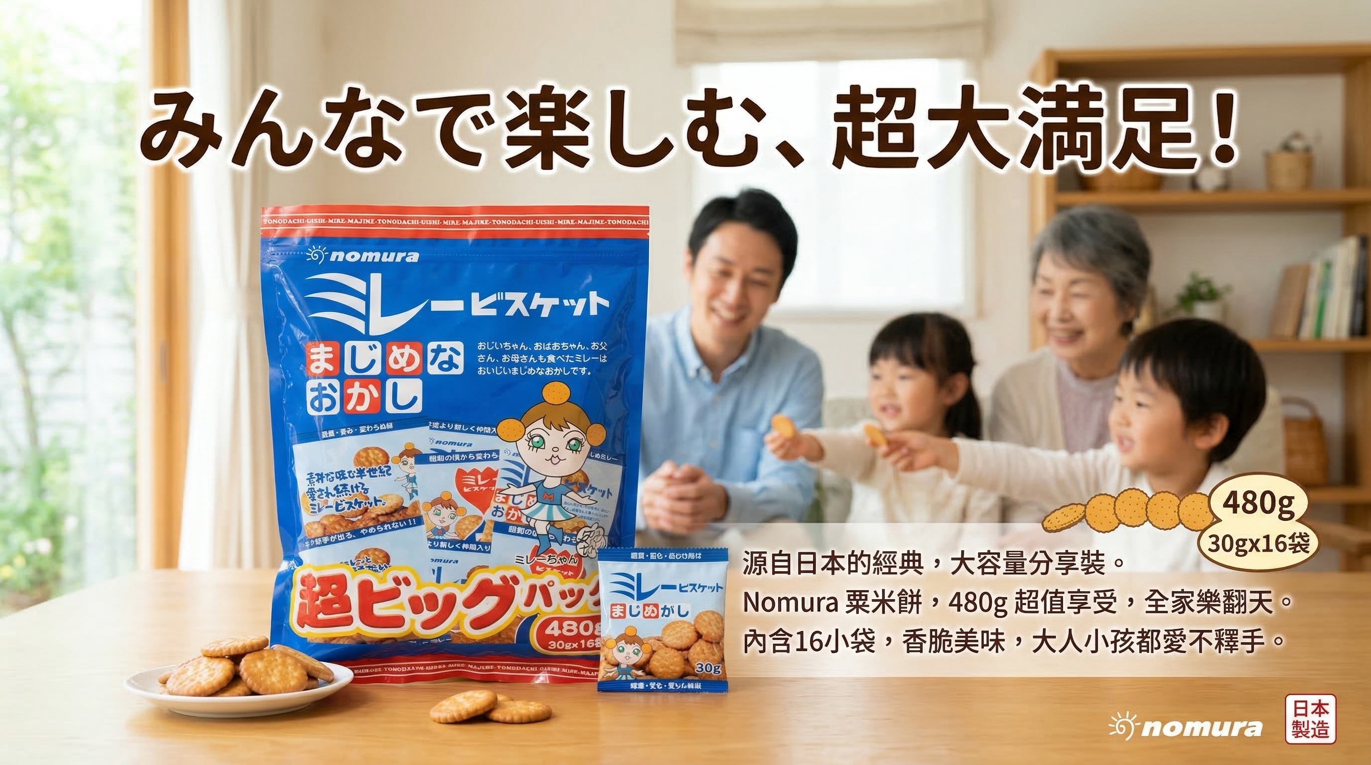 日本 野村超大美樂圓餅480g