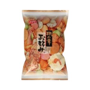 成分:澱粉,植物油脂(油菜籽油,棕櫚油),魷魚,加工醬油(醬油,砂糖,糊精,味醂(糯米,米麴菌,釀造酒精),鰹魚塊萃取物,水飴,發酵調味料(玉米,酵母,食鹽),豬肉萃取物),小麥粉,蝦,食鹽,砂糖,醬油,芝麻,磷蝦,水…